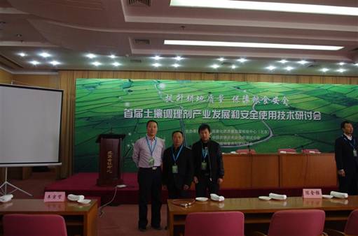 2013年11月28日至29日,首屆全國(guó)土壤調(diào)理劑產(chǎn)業(yè)發(fā)展和安全使用技術(shù)論壇在北京召開,我公司因在土壤調(diào)理劑產(chǎn)業(yè)的影響力受到會(huì)議邀請(qǐng),董事長(zhǎng)李智強(qiáng)、總農(nóng)藝師劉軍和副總經(jīng)理?xiàng)钛髴?yīng)邀出席。 為了引導(dǎo)土壤調(diào)理劑產(chǎn)業(yè)健康發(fā)展,促進(jìn)土壤調(diào)理劑科學(xué)合理使用,保障我國(guó)糧食安全和耕地質(zhì)量,由國(guó)家化肥質(zhì)量監(jiān)督檢驗(yàn)中心(北京)、中國(guó)農(nóng)學(xué)會(huì)農(nóng)業(yè)分析測(cè)試分會(huì)及中國(guó)植物營(yíng)養(yǎng)與肥料學(xué)會(huì)學(xué)術(shù)委員會(huì)和農(nóng)化測(cè)試專業(yè)委員會(huì)聯(lián)合舉辦了這次會(huì)議。會(huì)議期間,董事長(zhǎng)李智強(qiáng)和副總經(jīng)理?xiàng)钛缶臀夜井a(chǎn)品施地佳土壤調(diào)理劑跟與會(huì)專家和兄弟企業(yè)深入交流,總農(nóng)藝師劉軍圍繞土壤調(diào)理劑的產(chǎn)業(yè)發(fā)展、產(chǎn)品應(yīng)用效果、使用安全評(píng)價(jià)和未來發(fā)展方向等代表公司上臺(tái)發(fā)表了專業(yè)演講。