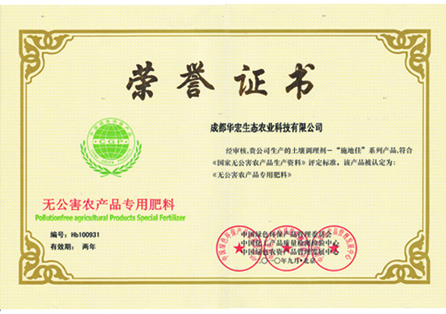 “施地佳”土壤調(diào)理劑系列產(chǎn)品榮獲中國(guó)“無公害農(nóng)產(chǎn)品專用肥料”榮譽(yù) 2013/12/24 華宏生物 “施地佳”土壤調(diào)理劑系列產(chǎn)品榮獲中國(guó) “無公害農(nóng)產(chǎn)品專用肥料”榮譽(yù)