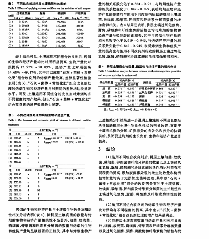不同土壤改良劑對土壤生化性質與烤煙產量的影響