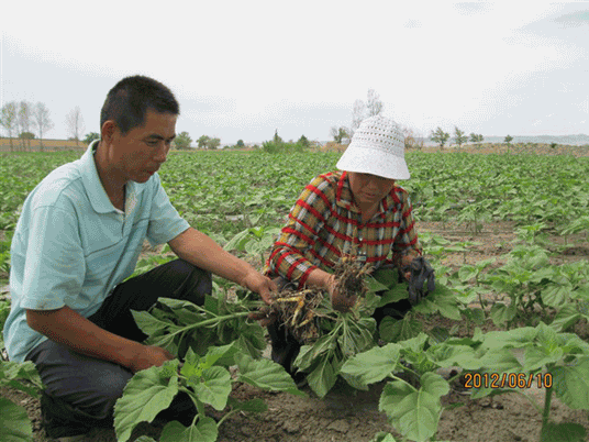 視察“吉祥雨”復(fù)合微生物菌劑防治葵花列當(dāng)圖