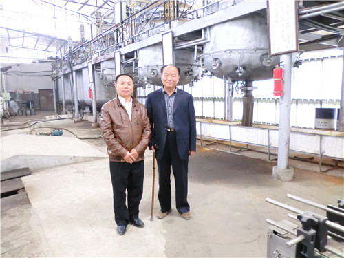 二位董事長(zhǎng)在改良劑生產(chǎn)反應(yīng)釜前留影