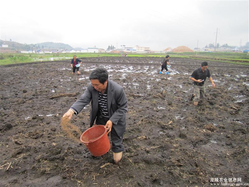 近日龍陵縣土壤肥料工作站和龍新鄉(xiāng)農(nóng)業(yè)技術(shù)推廣站技術(shù)員在農(nóng)業(yè)局楊增福副局長(zhǎng)的帶領(lǐng)下到龍新鄉(xiāng)勐冒社區(qū)村民委員會(huì)中二組孔忠押農(nóng)戶的承包田上開(kāi)展水稻施 地佳土壤酸性調(diào)理劑田間示范,示范田塊地點(diǎn)在勐冒磚瓦廠后面,示范所用的施地佳土壤調(diào)理劑由成都華宏生態(tài)科技有限公司廣漢分公司生產(chǎn)。該項(xiàng)目由全國(guó)農(nóng)技中 心土壤肥料技術(shù)處提供方案和技術(shù)指導(dǎo),由龍陵縣土壤肥料工作站組織實(shí)施,目的是通過(guò)開(kāi)展大田示范,驗(yàn)證、展示施地佳土壤調(diào)理劑改良酸化土壤的效果,總結(jié)科 學(xué)施用方法、適用作物和適宜區(qū)域,為大面積推廣應(yīng)用提供科學(xué)依據(jù)和配套技術(shù),促進(jìn)糧食增產(chǎn)、農(nóng)民增收和農(nóng)業(yè)增效。