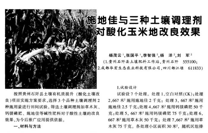 《農(nóng)村科技》2013年第2期 “施地佳”與三種土壤調(diào)理劑對(duì)酸化玉米地改良效果