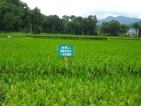 2015年4月江西省興國(guó)縣土壤肥料站安排在水稻早晚兩季試驗(yàn),此次試驗(yàn)采取對(duì)比定位試驗(yàn)方法,供試土壤為潴育型潮沙泥土,PH值為4.9,酸化程度已經(jīng)較為嚴(yán)重。試驗(yàn)設(shè)置了3個(gè)處理,大區(qū)采用隨機(jī)排列,處理一為對(duì)照試驗(yàn)田,農(nóng)民采用習(xí)慣施肥方式,不使用土壤調(diào)理劑。
