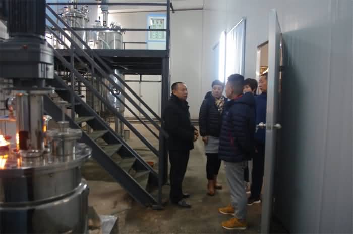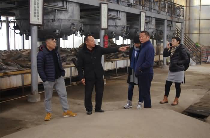 圖為劉董一行參觀(guān)成都華宏的土壤改良劑生產(chǎn)車(chē)間