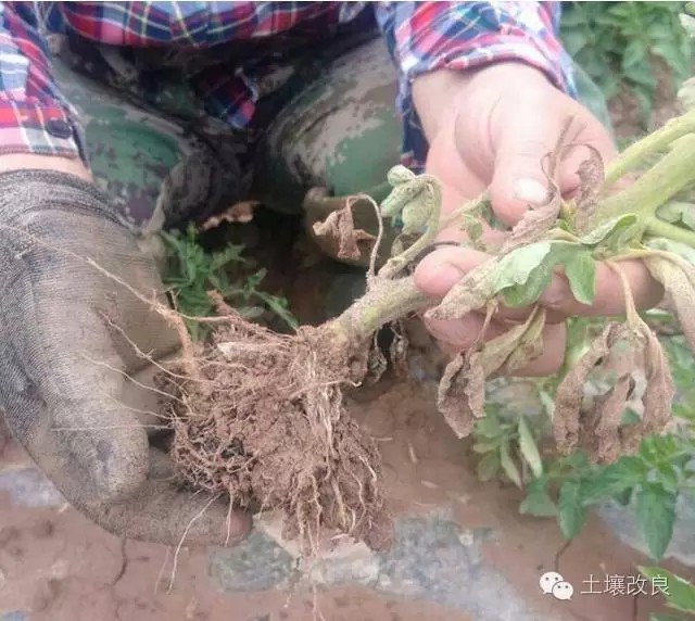 5、施用化肥不當,造成土壤有害物質(zhì)殘留等等,以上種種原因?qū)е路岩呙咕。T發(fā)維管束發(fā)病,造成番茄爛根枯萎。