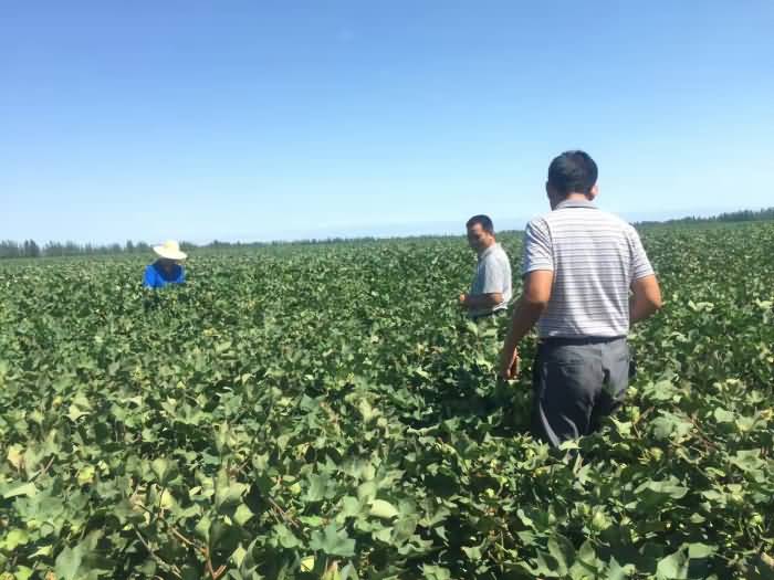 2016年在新疆生產(chǎn)建設(shè)兵團(tuán)第五師實(shí)施“神鋤”微生物功能菌劑防治棉花枯萎、黃萎病。小區(qū)實(shí)驗(yàn)和大田應(yīng)用同時(shí)進(jìn)行,公司總農(nóng)藝師劉軍與區(qū)域負(fù)責(zé)人小秦今天在實(shí)驗(yàn)田調(diào)查,到八十一團(tuán)六連與團(tuán)生產(chǎn)科姜濤科長(zhǎng)、連隊(duì)技術(shù)員李文在示范地田間調(diào)查和測(cè)試產(chǎn)量,發(fā)病率與對(duì)照田降低70%,平均培產(chǎn)超10%。八十三團(tuán)十二連張連長(zhǎng)介紹,往年病害發(fā)生嚴(yán)重,今年應(yīng)用神鋤生物菌防治,得到很好的抑制,在整個(gè)示范田沒有發(fā)生病害,畝產(chǎn)達(dá)350公斤以上用戶今年豐收在望!