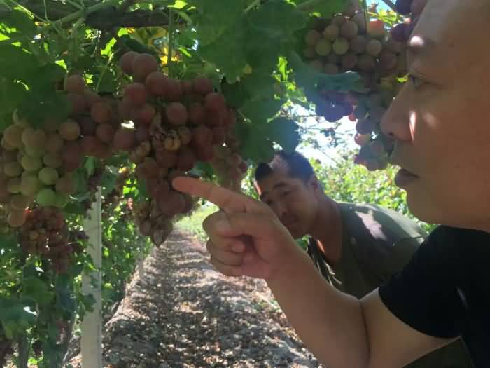 新疆生產(chǎn)建設(shè)兵團第五師83團5連15000畝今年葡萄黃化病害普遍發(fā)生,應(yīng)師農(nóng)資公司農(nóng)化服務(wù)部邀請幫助解決這個問題,選擇在葡萄種植戶石偉葡萄園,今年6月15日開始按公司方案進行,兩個月的應(yīng)用,葡萄黃化問題基本控制,果實正常,前面四張圖與后面四張照片對照黃化還是嚴(yán)重,果實顏色不佳,爛果現(xiàn)象嚴(yán)重,果農(nóng)石偉表示明年繼續(xù)按照公司方案實施,同時告訴我們旁邊有些種植戶愿意跟公司合作!我們?yōu)槔相l(xiāng)的愿望而高興,相信我們能與他們共同奔向致富!和諧社會就這樣體現(xiàn)!