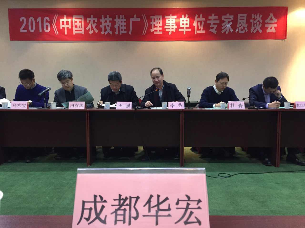 2016年12月3—4日,由全國(guó)農(nóng)技推廣中心《中國(guó)農(nóng)技推廣》雜志社、中國(guó)農(nóng)業(yè)技術(shù)推廣協(xié)會(huì)主辦的“2016微生物肥料推廣應(yīng)用交流暨《中國(guó)農(nóng)技推廣》理事單位座談會(huì)在北京召開,來自全國(guó)200個(gè)專家、學(xué)者、涉農(nóng)科技企業(yè)代表和各理事單位代表參加了座談會(huì),成都華宏生物科技有限公司楊洋副總經(jīng)理蒞臨座談會(huì)。