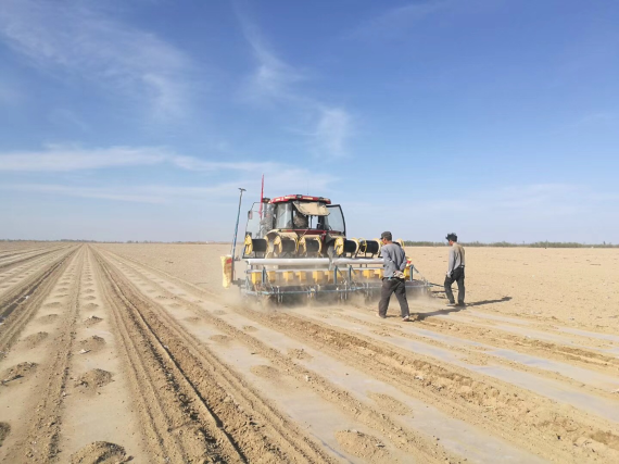 在華宏技術(shù)團(tuán)隊全力以赴、認(rèn)真負(fù)責(zé)的努力下,1770畝中低產(chǎn)田第一階段播種工作歷時7天順利完成。期間,新疆兵團(tuán)銀豐現(xiàn)代農(nóng)業(yè)機(jī)械有限公司總經(jīng)理劉興家到播種現(xiàn)場了解播種情況,此次全程播種設(shè)備全部由銀豐現(xiàn)代農(nóng)業(yè)機(jī)械公司提供,通過前沿技術(shù)與農(nóng)業(yè)科技機(jī)器的完美配合,為第二階段滴水出苗的管理工作打下堅實基礎(chǔ)。成都華宏生物科技有限公司技術(shù)人員表示,有了第一階段的作業(yè)基礎(chǔ),在當(dāng)?shù)卣?、新疆兵團(tuán)各級領(lǐng)導(dǎo),以及銀豐現(xiàn)代農(nóng)業(yè)機(jī)械有限公司劉總的大力支持和持續(xù)緊密配合下,這1770畝地產(chǎn)地的增產(chǎn)提效工作有了實力保障。在后續(xù)環(huán)節(jié),成都華宏技術(shù)人員還將繼續(xù)堅守在田間地頭,確保產(chǎn)業(yè)項目如期順利完成。