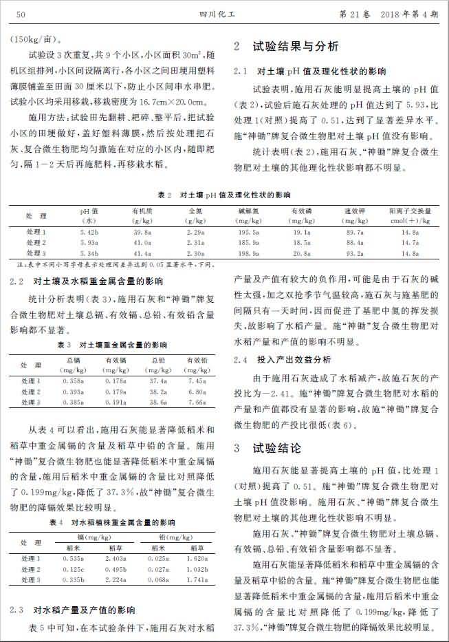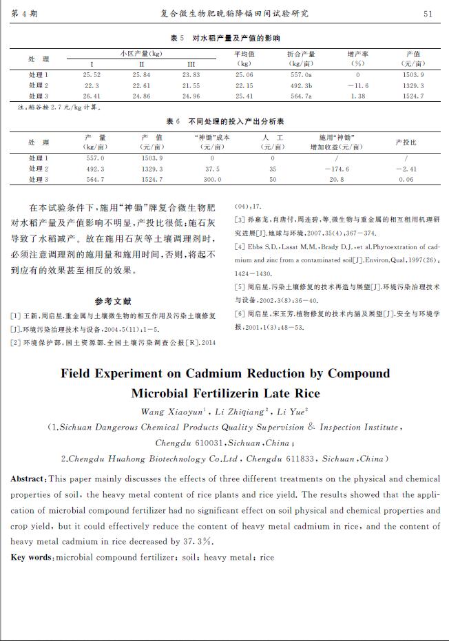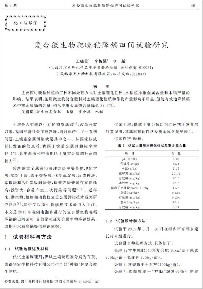 復合微生物肥晚稻降鎘田間試驗研究