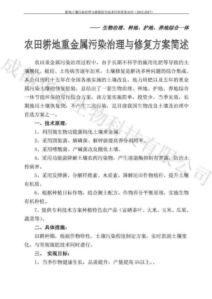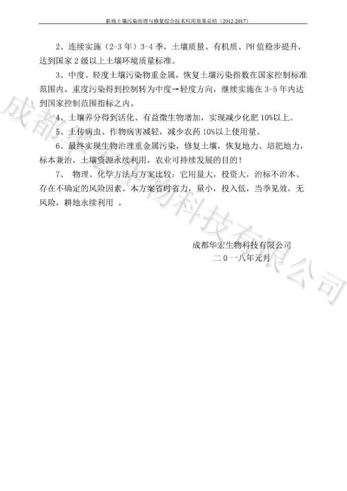 重金屬污染治理試驗(yàn)示范匯集2018.1.21成都華宏生物科技有限公司(合成本)(一)